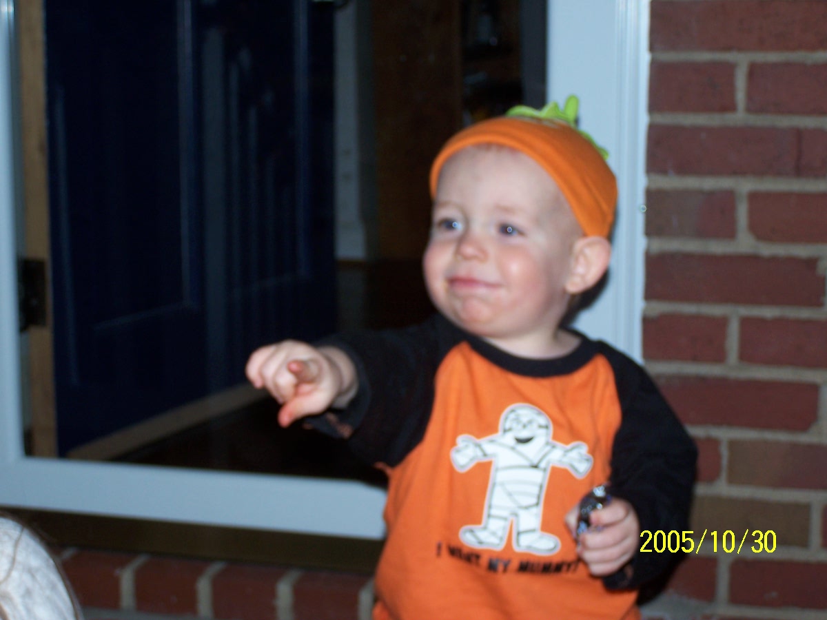 Showing Mommy how to dig into the Halloween candy basket : ))